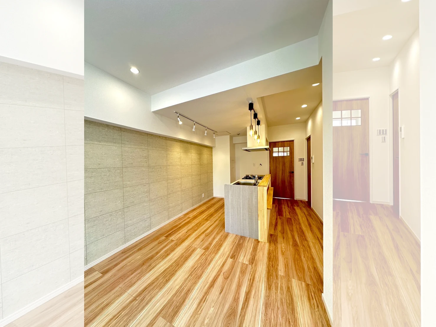 壁際にあったキッチンを中央に位置し、同線を増やし使用者次第では色々な使い方ができる配置とデザインで仕上げました